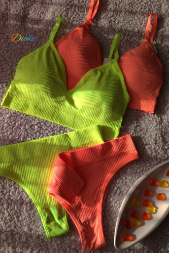 سوتین و شورتی که توسط شرکت تولیدی رنگ و بافت پارچه یکسان و مدل هماهنگ دارند
