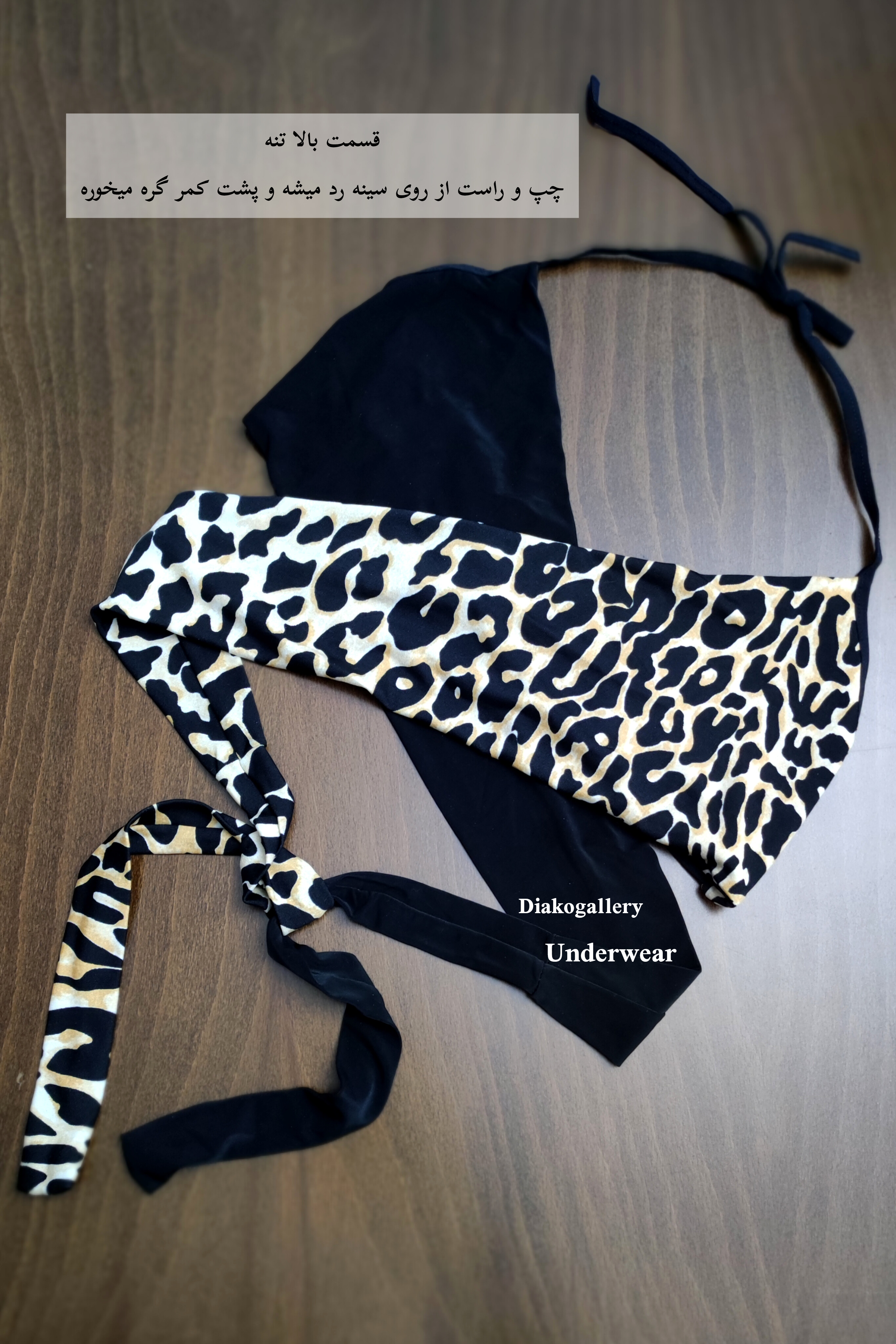 لباس خواب دو تکه کاستوم فانتزی ترکیبی مشکی پلنگی