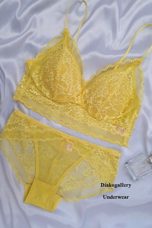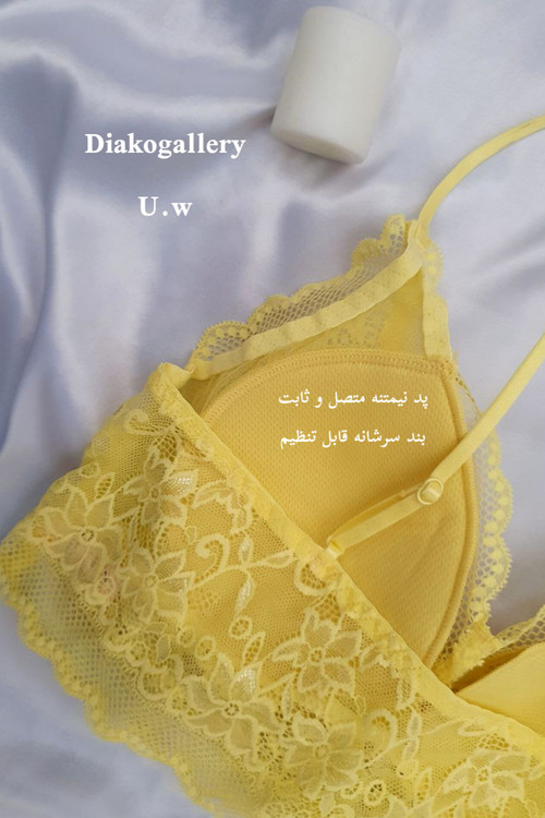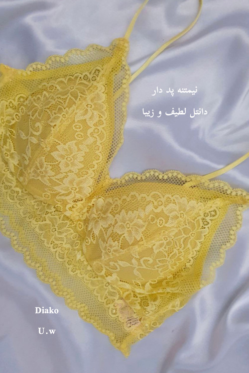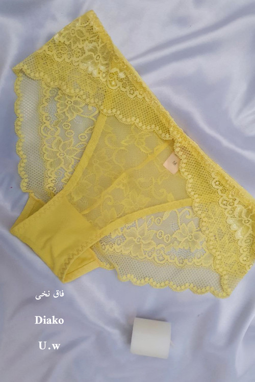 💛 ست دانتل شامل نیمتنه بدون قزن، دارای پد تنفسی و شورت اسلیپ با فاق نخی، دارای کشسانی.