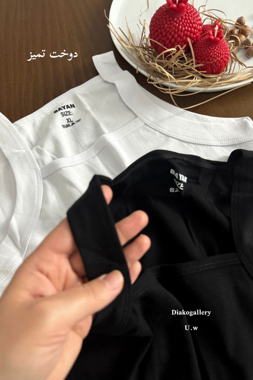 زیر پوش یقه خشتی مردانه با جنس ۱۰۰ درصد نخ پنبه، ضد حساسیت، ضد آلرژی، با جذب رطوبت بدن، در رنگبندی سفید و مشکی و سه سایز ایکس لارج (۳۸/۴۰) و دو ایکس لارج (۴۰/۴۲) و سه ایکس لارج (۴۲/۴۴) به مجموعه دیاکوگالری اضافه شد.