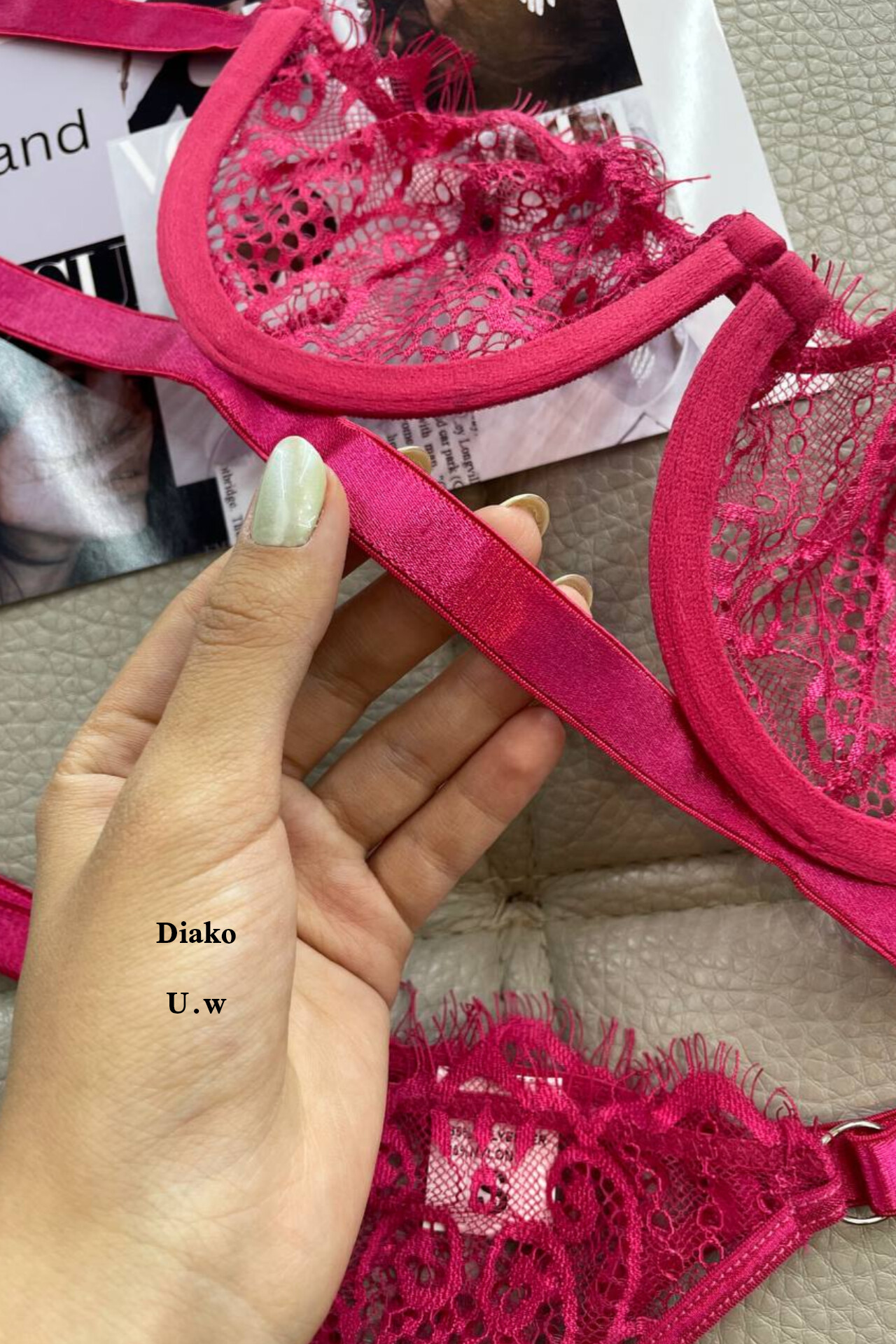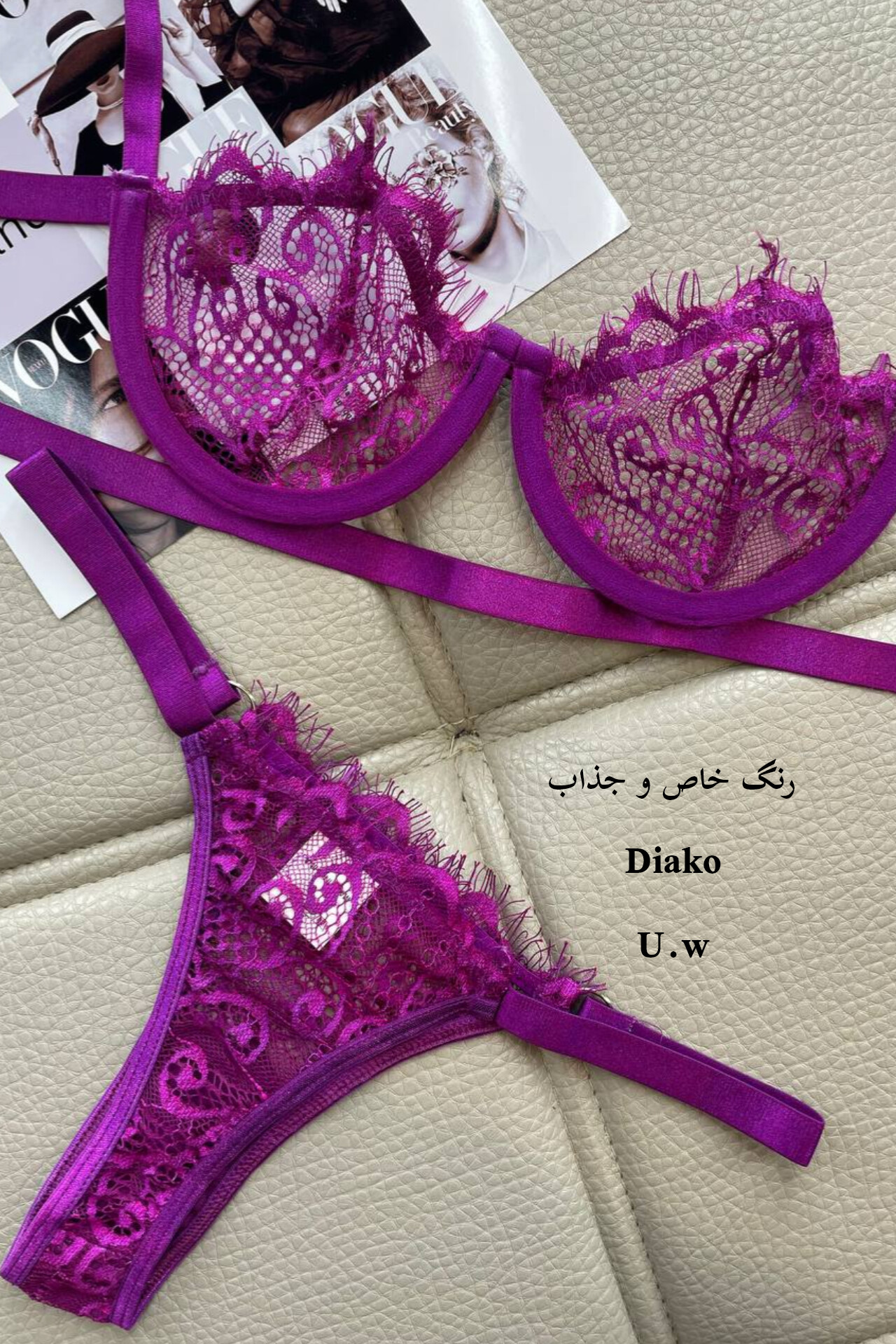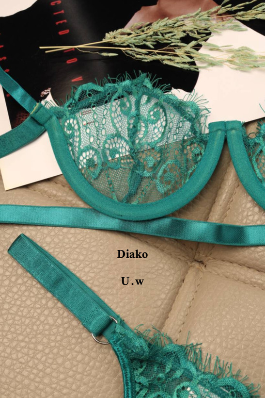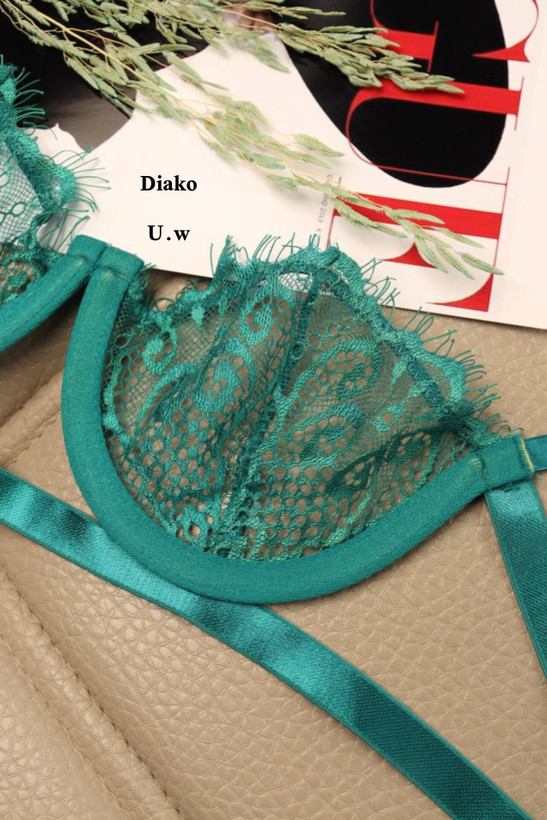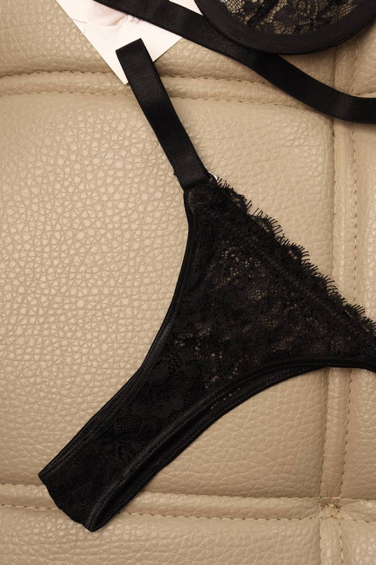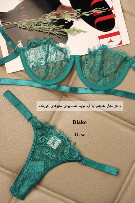سوتین فنردار کاپ A و شورت دانتل مژه ای شین (سایز کوچیک)
