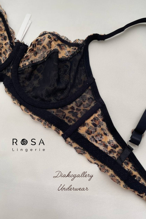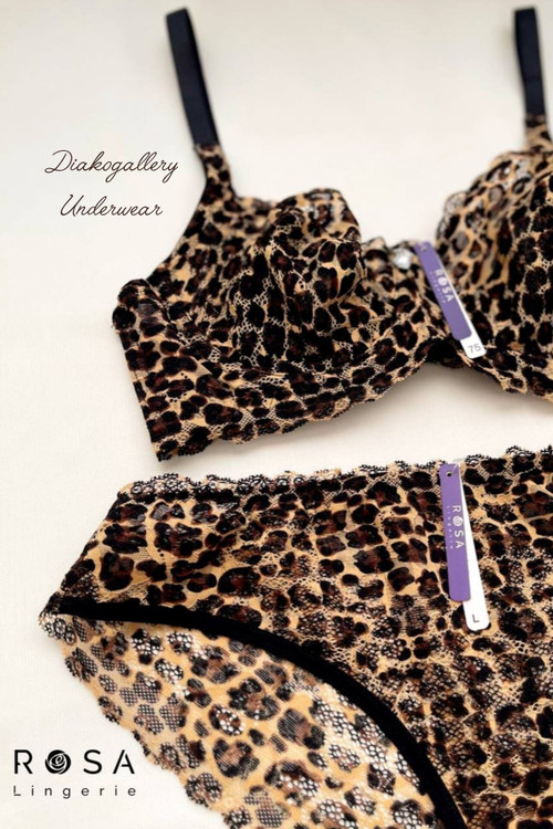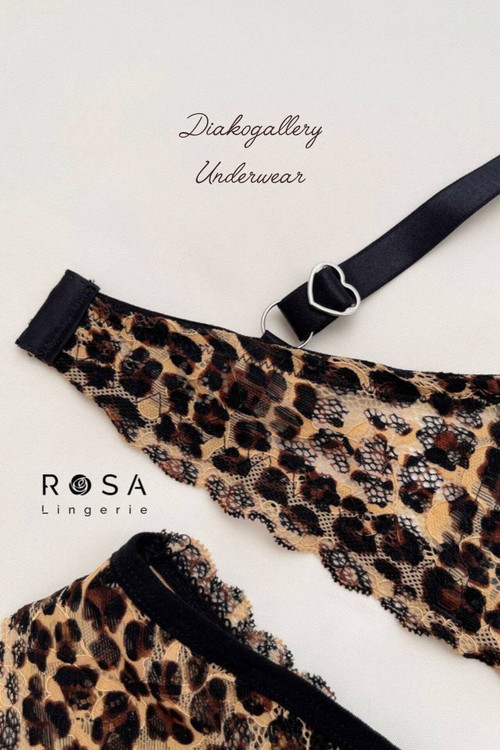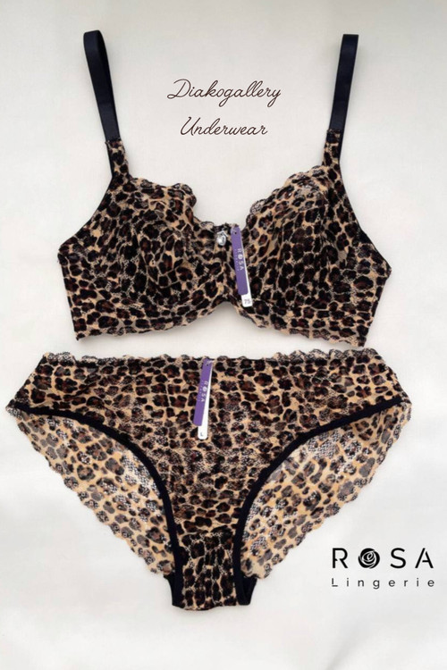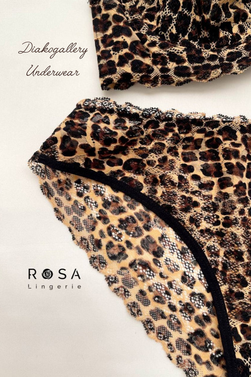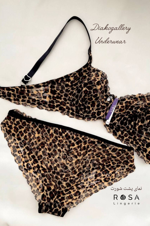 ست سوتین فنردار و شورت دانتل کشی پلنگی