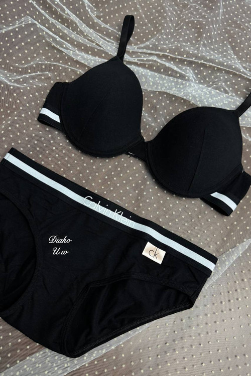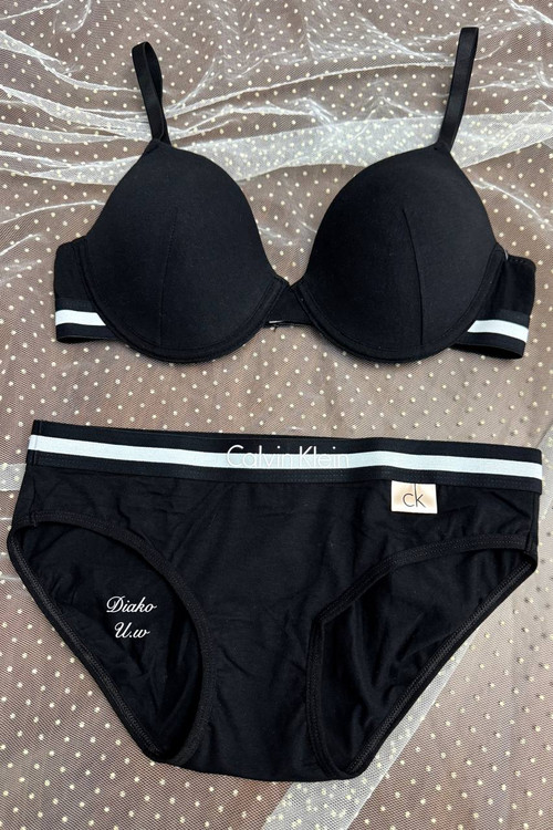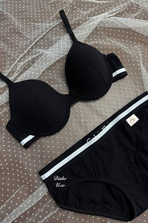 ست سوتین فنردار اسفنجی لایه نازک و شورت اسلیپ نخ پنبه کلوین کلین (ck) ارجینال برند فیتن